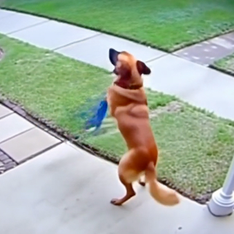 The tension was palpable, but the girl’s innocence began to diffuse it. She giggled, stepping closer, drawn to the gentle sway of Rocky’s tail. The video footage that later circulated captured every second of this interaction: the child’s tentative fingers brushing against his fur, the gleam of delight in her eyes, and Rocky’s unwavering patience.